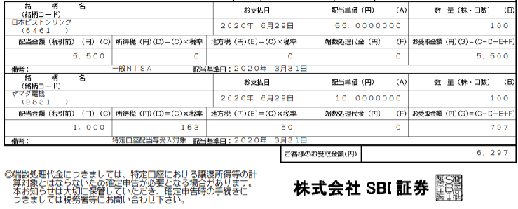 今回は1株あたり55円でNISAで100株保有していますので、5,500円いただきました。