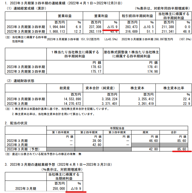 2023年度予想は減益